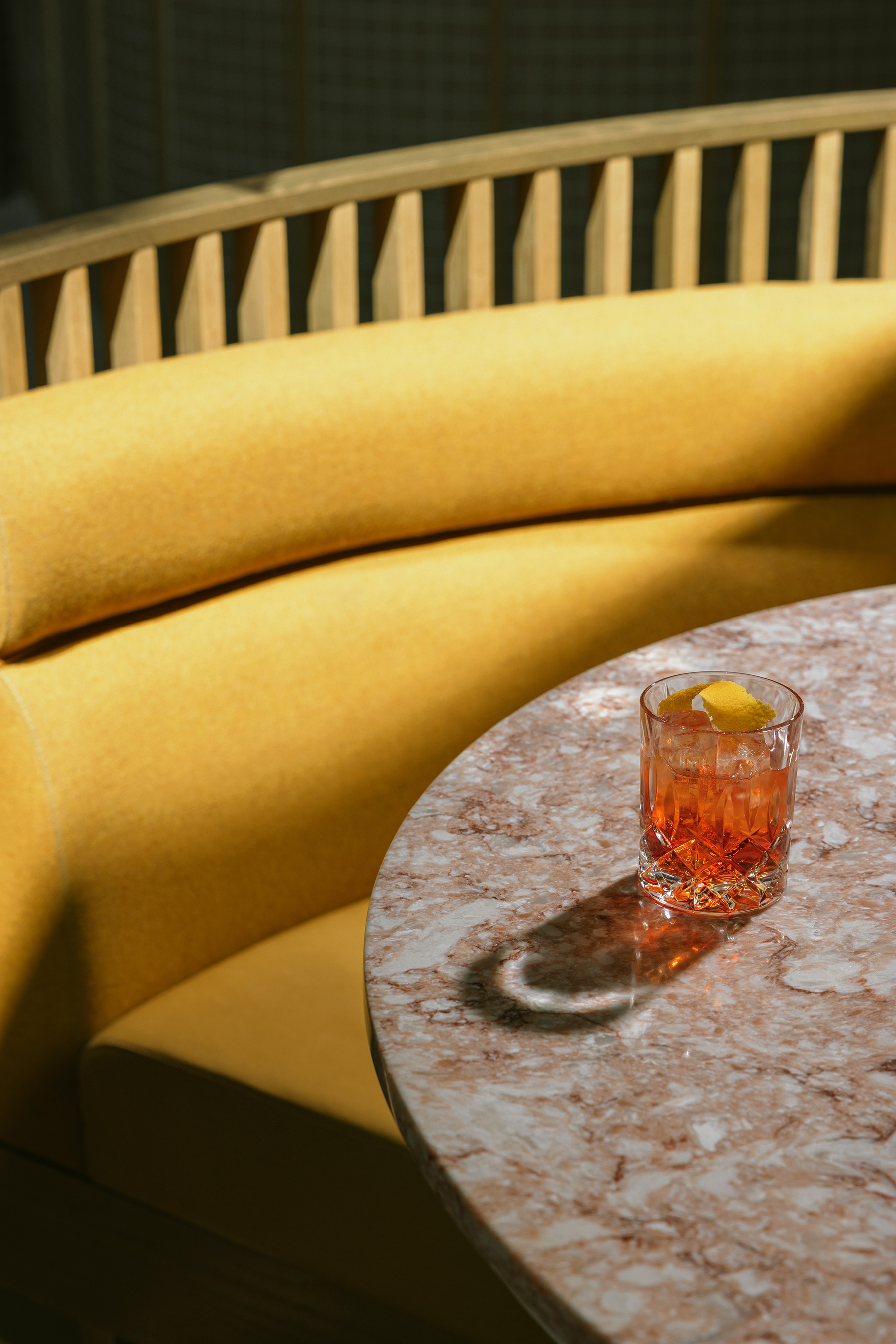 If Lupo’s furniture and decor was described as food it would be bold and flavourful. This is seen through details like a variety of experiential seating layouts that can be cozy and intimate or loud and bustling, with custom banquette sections that have unique detailing including hand-crafted mosaic tile. Bordering on garish, playful wayfinding signage nods to Italian street market signs, furthering the eclectic flavour of this space.